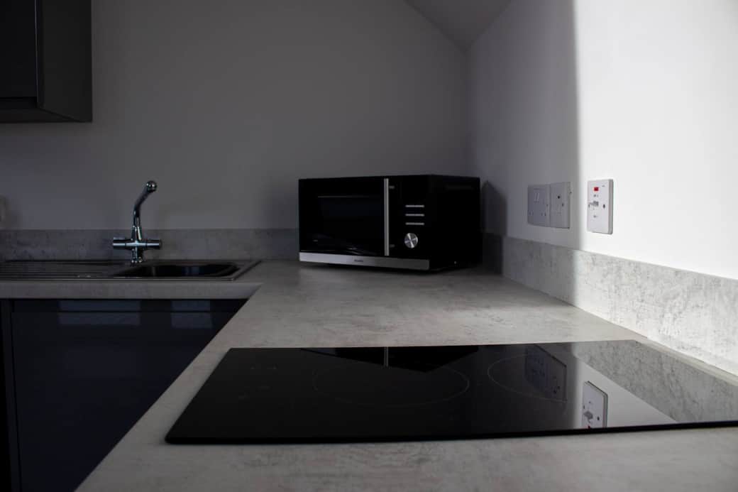 Cooking utensils, Kitchenette, Microwave, Oven, Refrigerator