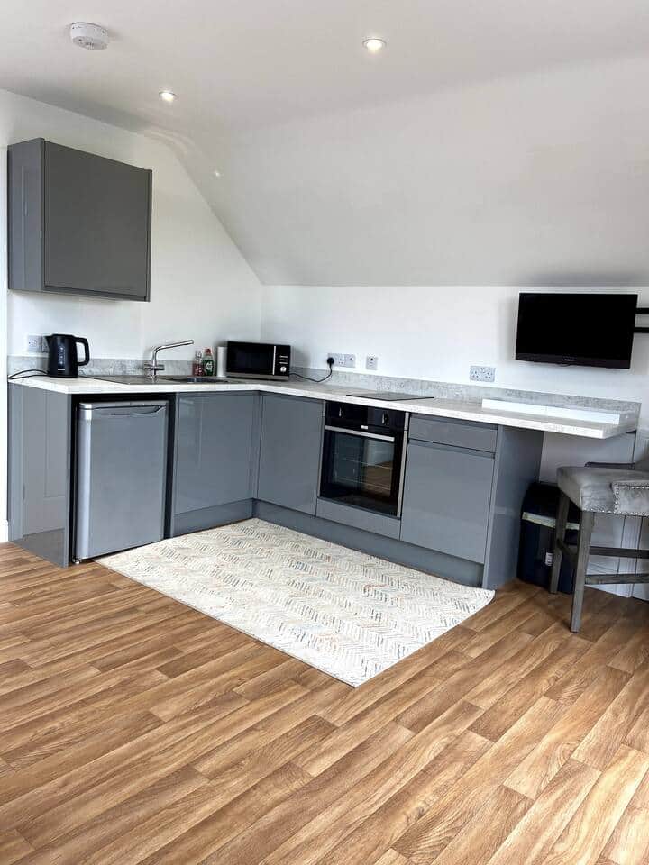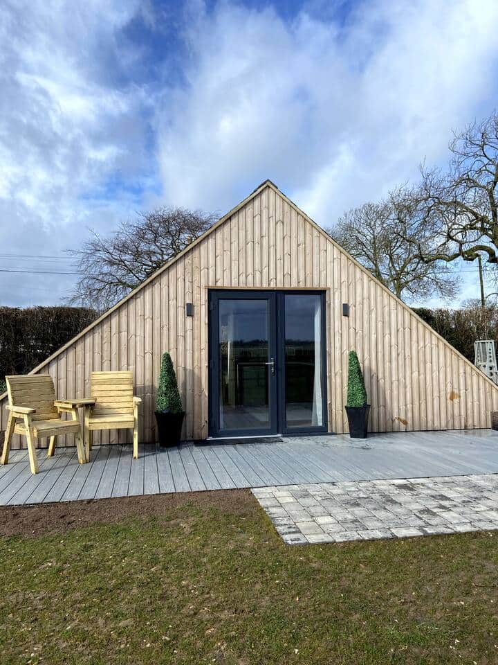 Located at Wren Farm, our brand new to 2023 luxury lodge situated besides the alpaca fields, with Wren Farm Desserts cafe on site. Also near beaches, Skegness, Chapel, Mablethorpe, etc. We are dog friendly! Fully stocked (cutlery) Has 1 double bed and a sofa bed that sleeps 2. Private bathroom with shower. Surrounded by green fields, beautiful animals and excellent food! Add ons available on request - Ploughman's Grazing Box, Breakfast Boxes. Alpaca trekking also available. Main entrance has kitchen, sofa bed and alpaca field view. Private bedroom with double bed. Private bathroom with shower, toilet & sink.
